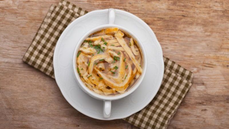 Rosół wołowy z makaronem z ciasta naleśnikowego