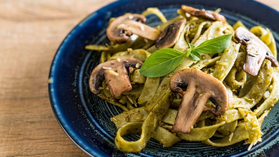 Tagliatelle ze szpinakiem i pieczarkami