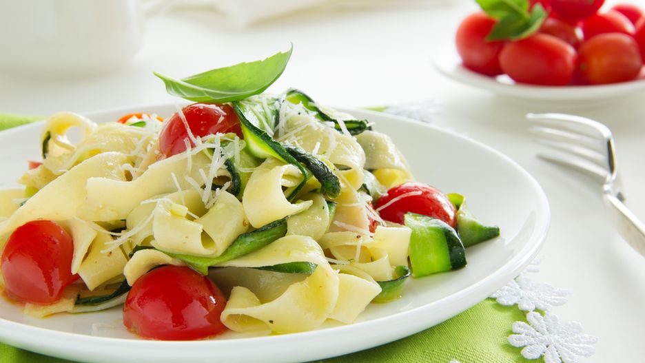 Cukinia to warzywo dobrze znane, ale wciąż dość rzadko wykorzystywane w naszej kuchni. Najlepsza jest oczywiście ta uprawiana ekologicznie - teraz można ją bez problemu kupić. Aby przygotować makaron z cukinią musimy przygotować: dwie średnie cukinie, posiekaną cebulę, posiekane dwa ząbki czosnku, oliwę z oliwek, kilka pomidorków koktajlowych, śmietanę 18 proc., sól i pieprz oraz makaron. Do tego przepisu najlepiej nadaje się makaron tagliatelle, choć można wykorzystać każdy inny.