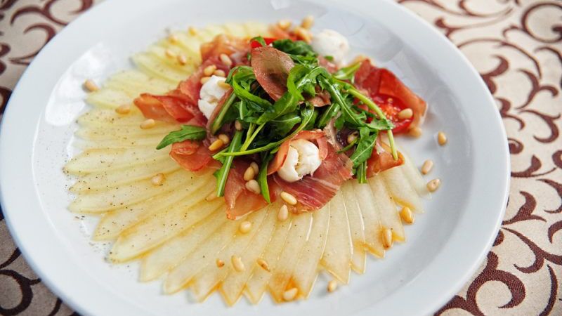 Carpaccio z melona i sałatka z soczewicy
