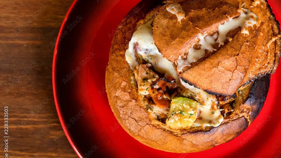 - Zetnij wierzch chleba (ok. 3 cm od góry). Wydrąż miąższ.
