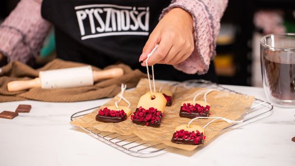Nazwa tych ciasteczek wcale nie jest przypadkowa. One naprawdę wyglądają jak torebki herbaty. Są tak urocze, że wręcz nie sposób oderwać od nich wzroku. Do tego świetnie smakują. Kruche wypieki w połączeniu z polewą czekoladową i liofilizowanymi malinami skradną serce nawet największego niejadka. Nie zwlekaj więc ani chwili i zapoznaj się z dokładnym sposobem ich przygotowania, który pokazaliśmy w wideo. Listę składników na domowe ciasteczka znajdziesz poniżej.