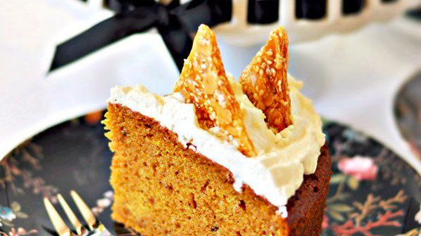 Smaczne, korzenne ciasto dyniowe. Jak zapewnia Natalia Kudela, autorka bloga "Mała Cukierenka", podczas pieczenia cudownie pachnie w domu. W konsystencji ciacho to jest dość zbite i wilgotne. Wierzch posmarowany jest delikatnie cytrynowym kremem, a fantastycznego smaczku dodają sezamki.