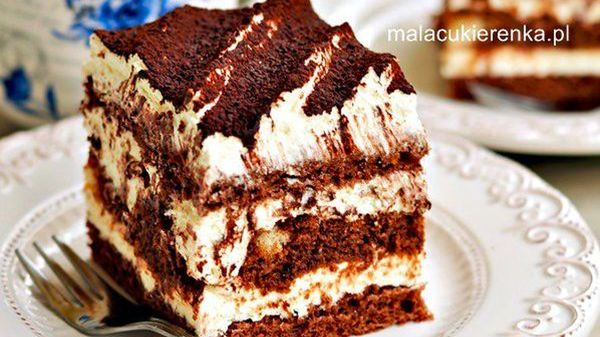 Doskonałe ciasto z jasnym i ciemnym biszkoptem, nasączonego czekoladowym ponczem z alkoholem. Nie za słodkie, ładnie pachnie i apetycznie się prezentuje. Przepis prosto z bloga "Mała cukierenka".