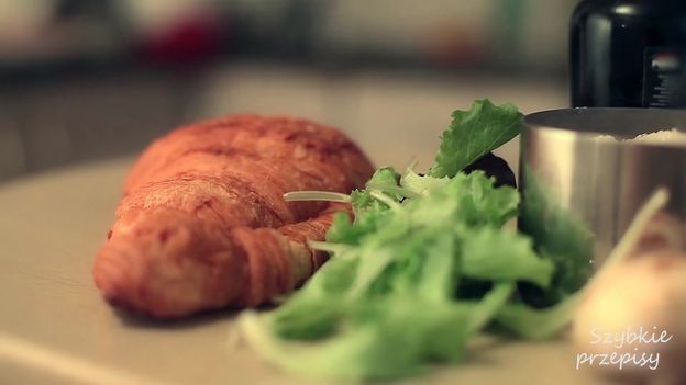 Croissant z jajecznicą, kurczakiem i pieczarkami. Mistrzowskie śniadanie