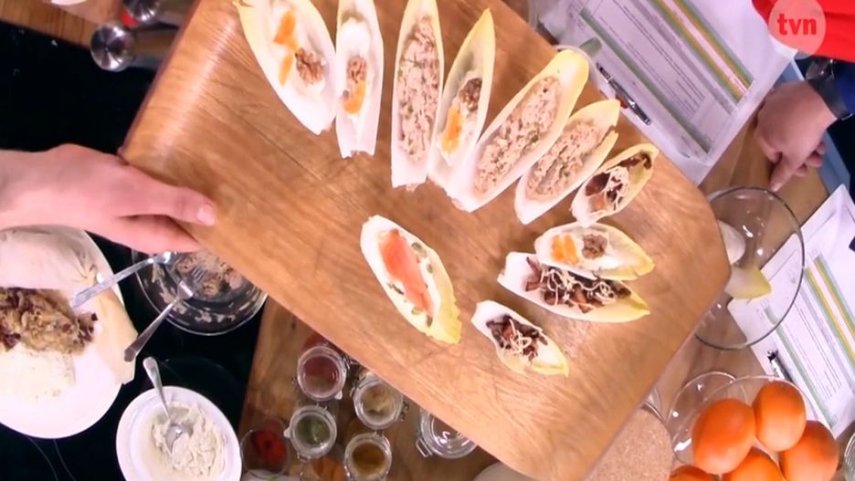 W oczekiwaniu na nowalijki, wiosnę w kuchni możemy powitać cykorią. Ma one podłużne, chrupiące liście o słodko-gorzkim smaku. Jest idealna do sałatek, surówek, zapiekanek, kremowych zup. Mikołaj Rey podpowiedział jak wybrać dobrą cykorię i przygotował kilka smakowitych dań z tym warzywem - Tartę Tatin z gruszkami, serem pleśniowym i orzechami, sałatkę z serem żółtym, rodzynkami i prażonym słonecznikiem, łódeczki oraz papiloty z polędwicą z indyka.