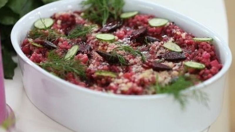 Kucharz Andrzej Polan przygotował dania z botwinką w roli głównej. Na stole pojawił się chłodnik z grzankami, pęczak z botwinką i serem do kurczaka oraz kluseczki ziemniaczane z botwinką i serem. Zobaczcie przepis.