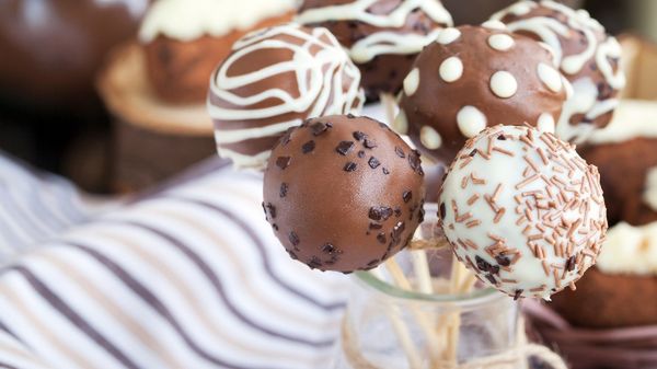 Po tym czasie, jeśli czekolada przestygnie, roztopić ją ponownie. Wyjąć cake pops z zamrażarki, zanurzać w roztopionej czekoladzie, czekając, aż skapnie jej nadmiar. Dowolnie udekorować, np. posypką kolorową. Wbić patyczkami w kartonik lub poukładać "do góry nogami" na papierze do pieczenia.