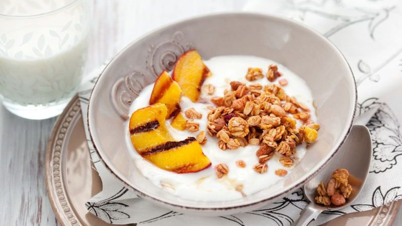 Domowe musli z karmelizowaną brzoskwinią i jogurtem