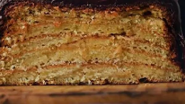 - Kiedy pierwsza warstwa jest już upieczona, wyjmujemy foremkę i nakładamy kolejną warstwę ciasta. Po nałożeniu każdej warstwy ciasto wkładamy do piekarnika.