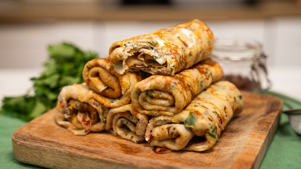 Naleśniki w takim wydaniu to gotowy pomysł na szybki posiłek dla całej rodziny. Przy smażeniu ciasta od razu przygotowujesz farsz. Wszystko więc przebiega szybko i sprawnie. Jak to wygląda w praktyce? Obejrzyj nasze wideo, gdzie czeka dokładna instrukcja. Lista składników znajduje się poniżej.