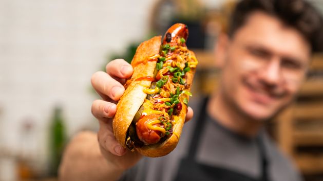 Hot dogi z grilla w nowoczesnej odsłonie – z soczystą kiełbasą, ciągnącym się serem cheddar i dodatkiem ziołowego masełka. Całość zamknięta w chrupiącej bułce i podana z ulubionymi dodatkami: kiszonym ogórkiem, musztardą, ketchupem i prażoną cebulką. Idealny pomysł na letnie spotkania przy grillu lub szybki obiad na świeżym powietrzu!