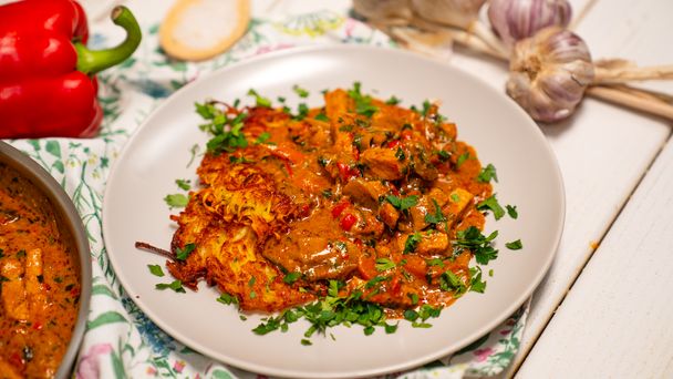 Gulasz ze schabu połącz z plackami ziemniaczanymi. O taki obiad będzie dopominać się cała rodzina