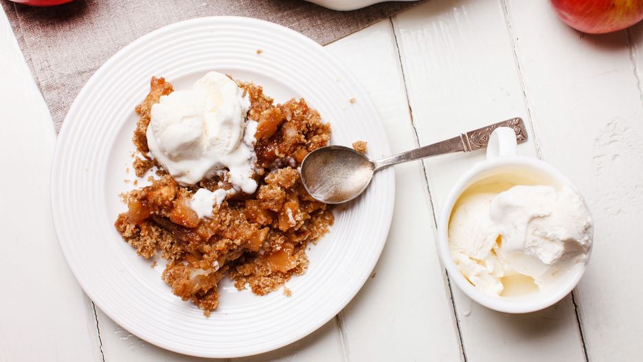 Jabłka pod kruszonką, czyli crumble, to świetna propozycja dla osób, które lubią szarlotkę, ale nie mają czasu na zagniatanie ciasta. Deser można wzbogacić orzechami, płatkami migdałowymi i podać z kulką lodów waniliowych. Pycha!