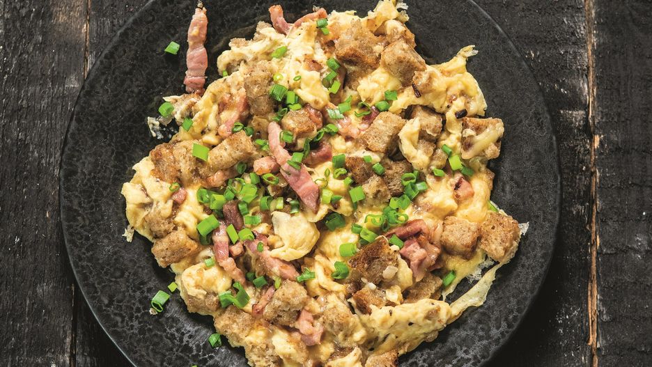Sposób na udany poranek? Pożywna i rozgrzewająca jajecznica. Jola Caputa proponuje jajecznicę po góralsku. Wędzony boczek i oscypek zamienią zwykłe danie w prawdziwa kulinarną ucztę.