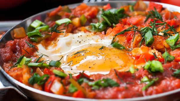 Marta Wodzińska2 września 2019, 14:37ZAPISZ ZAPISANO UDOSTĘPNIJ Udostępnij na X Udostępnij na FacebookuSKOMENTUJJajka w nowej odsłonie. Tunezyjska szakszuka Szakszuka to danie danie z Bliskiego Wschodu i Afryki Północnej, prawdopodobnie pochodzi z Tunezji. Nazwę można przetłumaczyć jako wielki bałagan. Potrawa składa się głównie z jajek smażonych na pomidorach. Zobacz film.Zwiń opis Rozwiń opispomidory jajka szakszuka