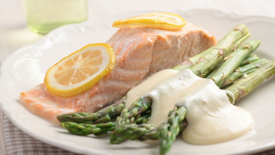 Świetnie komponuje się zwłaszcza z zielonymi szparagami, wcześniej podgotowanymi przez kilka minut we wrzątku. Oto przepis na sos holenderski.