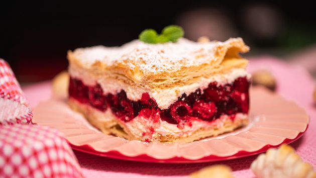 Karpatka to jedno z najbardziej popularnych ciast w naszym kraju. Pewnie zajadaleś się nią wiele razy, nie myśląc nawet o innej potencjalnej formie przygotowania. Okazuje się jednak, że czasami warto zaszaleć i wprowadzić małe zmiany nawet w dobrze znanych i lubianych przepisach. Połącz karpatkę z malinową wkładką, a twoja rodzina na pewno będzie zachwycona. Dokładną instrukcję przygotowania znajdziesz w naszym wideo. Lista składników czeka poniżej.