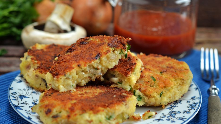 • Uformować okrągłe kotleciki. Obtoczyć w bułce tartej i smażyć na rozgrzanym tłuszczu.