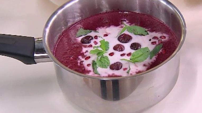 Krem z pieczonych buraków z wiśniami i mlekiem kokosowym