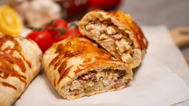 Kurczakobagiety to wyjątkowo smaczna i szybka propozycja na ciepłą przekąskę, kolację lub imprezowe danie, które podbije każde podniebienie. Bazą jest gotowe ciasto na pizzę, które zamienia się w chrupiącą bagietkę pełną aromatycznego farszu. W środku znajdziesz soczystego kurczaka gotowanego w bulionie, usmażony boczek, kremowy serek śmietankowy, parmezan, mozzarellę i czosnek. Całość doprawiona sosem Worcestershire, musztardą Dijon, sokiem z cytryny i oregano. Po 15 minutach pieczenia w 200°C otrzymujesz zapiekane bagietki o wyrazistym smaku, które znikają z talerza w kilka minut. To pomysł na szybki obiad, lunch do pracy albo ciepłą przekąskę dla gości – po prostu musisz je spróbować!