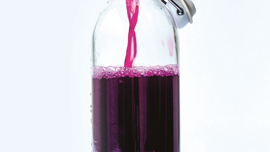 - Przelej kwas do butelki za pomocą lejka, odcedzając kawałki buraka. Zachowaj je na później (zob. Rady poniżej). Kwas można spożywać od razu lub pozostawić do wtórnej fermentacji w celu mocniejszego nagazowania napoju.