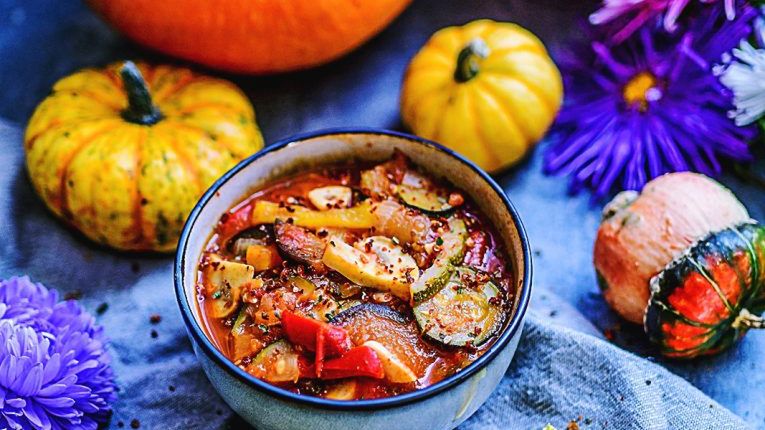 Tradycyjnie leczo to rodzaj jednogarnkowej potrawy z dużą ilością warzyw, przygotowywane na mięsie, np. kiełbasie. Dzisiaj propozycja jarskiej wersji tego dania z dodatkiem pieczarek i bakłażana. Jest rozgrzewająco i kolorowo. W sam raz na pierwsze, jesienne dni. Przepis pochodzi z bloga Opietruszka! Joanny Byczkiewicz.