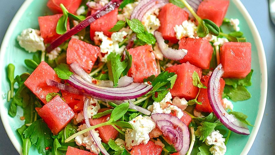Letnia sałatka z arbuzem, fetą i dressingiem z pomarańczy
