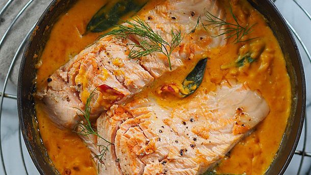 Łosoś duszony w sosie dyniowym. Szybko i smakowicie