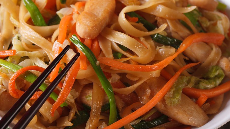 Makaron ryżowy z kurczakiem i warzywami z dodatkiem sosu sojowego i oleju sezamowego to kwintesencja azjatyckiej kuchni. Przepis jest bardzo prosty, szybki, a wszystkie składniki łatwo dostępne