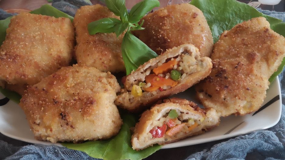 Mięso kroimy w plastry, rozbijamy i doprawiamy pieprzem oraz solą. Warzywa prużymy na rozgrzanym oleju z dodatkiem przyprawa, które znajdują się w środku opakowania. Warzywny farsz nakładamy po łyżce na środek mięsa. Zwijamy w kopertki i panierujemy w roztrzepanym jajku oraz bułce tartej. Smażymy na rozgrzanym oleju z każdej strony. Roladki gotowe.