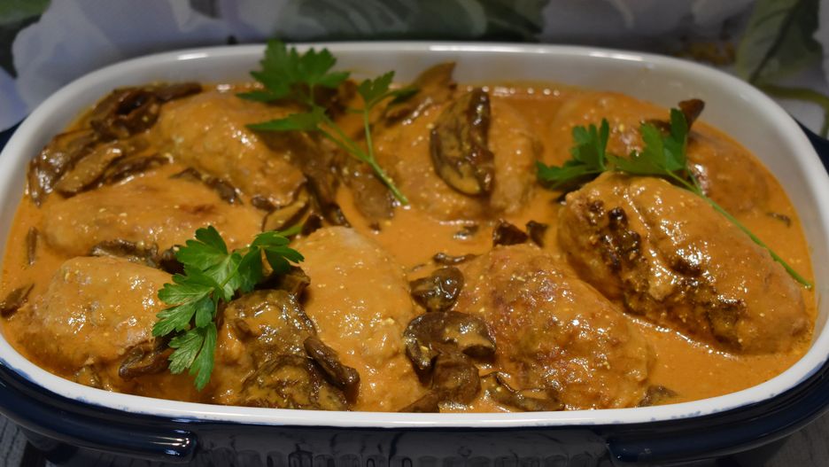 - Sos łączę z kotletami. Podaję z ziemniakami i pozostałym farszem warzywno-grzybowym.