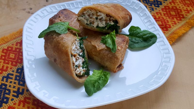 Naleśniki z kaszą gryczaną, twarogiem i szpinakiem