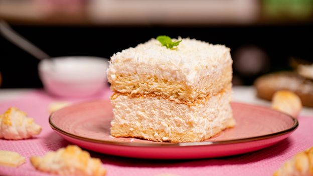 Choć to ciasto warstwowe kolorami bardziej kojarzy się z zimową aurą, to tylko pozory. Tak naprawdę Pijany Kokos smakiem nawiązuje do wakacyjnego wypoczynku w tropikach. Jeśli więc brakuje ci lata, możesz przywołać je do swojej kuchni jeszcze dziś. Puszysty biszkopt z delikatnym kremem z dodatkiem wiórków kokosowych zrobi wrażenie na każdym, kto choć raz go spróbuje. Z racji na obecność alkoholu w przepisie, ciasto adresowane jest do pełnoletnich miłośników słodkości. Dokładną instrukcję znajdziesz w naszym wideo. Lista składników czeka poniżej.