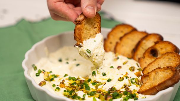 Przepis na idealną przekąskę lub przystawkę – ubita feta z grzankami i pistacjami. Połączenie kremowej fety, serka śmietankowego, czosnku i cytryny daje wyjątkowo aksamitną pastę, którą podajemy z chrupiącymi grzankami. Całość posypana prażonymi pistacjami i świeżym szczypiorkiem. Prosty, szybki i efektowny sposób na pyszną kolację lub poczęstunek dla gości. Zobacz, jak przygotować ubita feta z grzankami w zaledwie kilka minut!