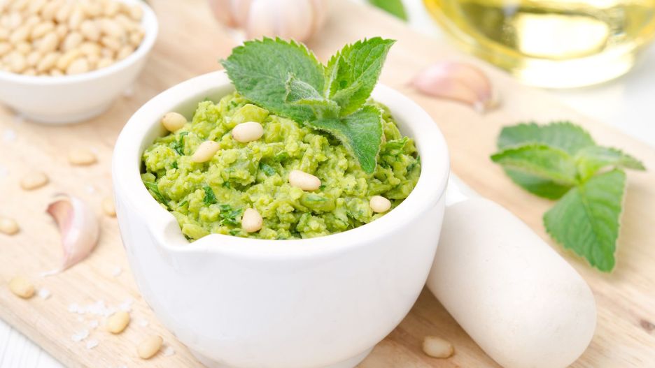 Dla tych, którzy nie mają cierpliwości, by ręcznie ucierać bazylię, z pomocą przychodzi blender. Wystarczy umieścić w kielichu wszystkie składniki (poza oliwą) i rozdrobnić je. Pamiętaj, by miksować na wolnych obrotach i niezbyt długo, ponieważ podgrzane pesto ściemnieje i straci swoje właściwości. Na koniec wlej oliwę i wymieszaj. Pesto można przygotować niemal ze wszystkich zielonych liści np. rukoli, szpinaku, pietruszki, liści rzodkiewki, brokuła, kalafiora czy pokrzywy. Orzeszki piniowe można z powodzeniem zastąpić pestkami dyni, słonecznika, nerkowcami lub orzechami włoskimi, są równie smaczne.