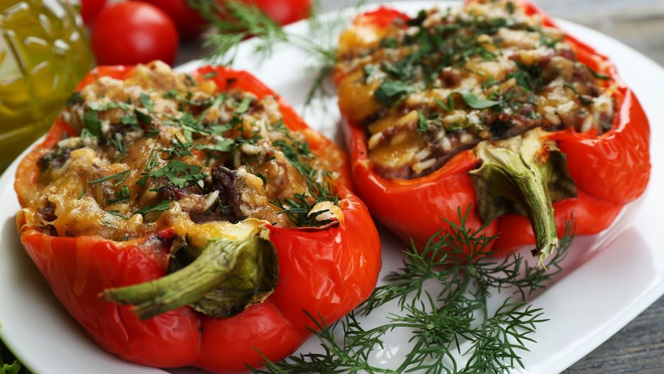 Pieczone papryki faszerowane kaszą jaglaną