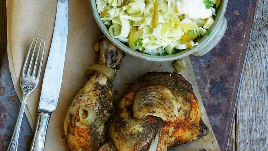 Pieczone udka kurczaka z chrupiącą surówką. Twoja rodzina pokocha ten przepis