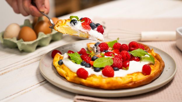 - Do pieczonego naleśnika pasują różnego rodzaju dodatki, dlatego możesz je zmieniać i dostosowywać do pory roku. Stawiaj na sezonowe owoce, a takie śniadanie szybko się nie znudzi. Smacznego!