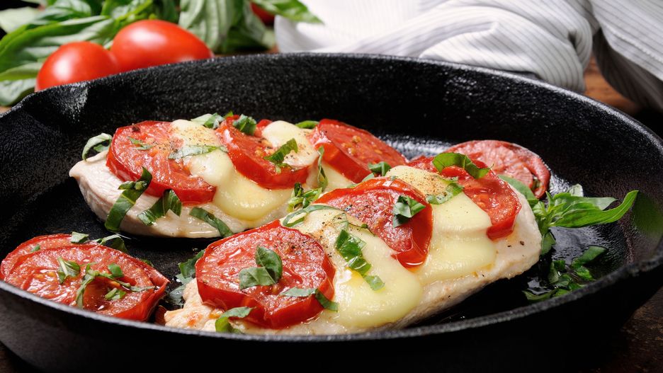 Pierś z kurczaka zapiekana z mozzarellą i pomidorami. Szybki obiad we włoskim stylu