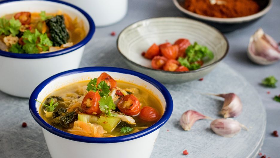Potrawy warzywne coraz częściej nie są traktowane jedynie jako dodatek do obiadu, ale jako pełnowartościowe danie. Duszone warzywa to świetny pomysł na drugie śniadanie lub kolację. Składniki: papryka zielona, papryka żółta, cukinia, dwie szalotki, ząbek czosnku, oliwa z oliwek, natka pietruszki mielone przyprawy: papryka ostra, kmin rzymski, kolendra, sól i pieprz, oliwa z oliwek.
