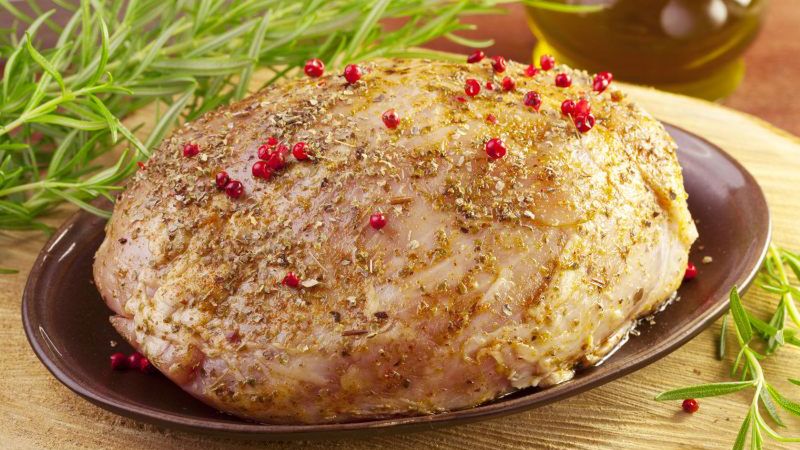 Smak tego mięsa wzbogaci połączenie świeżo mielonego kolorowego pieprzu i drobno pokruszonych liści laurowych, zalanych płynnym miodem, sosem sojowym, oliwą z oliwek (każdego płynu po 2 łyżki) i łyżką oleju sezamowego.