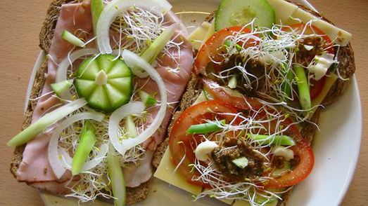 Pomysłowe jest też wykonanie „chlebowego przekładańca". Najlepiej posłużyć się tu ciemnym, razowym chlebem. Kroimy go wzdłuż na 4 części i smarujemy masłem. Pierwszą „kromkę" smarujemy grubą warstwą pasty i przykrywamy kolejną warstwą chleba, który znów pokrywamy inną pastą... Tak stworzony przekładaniec wkłada się do lodówki, a kiedy się schłodzi - wystarczy pokroić go na dwucentymetrowe kromki, tworzące oryginalne koreczki. Oczywiście w tym przypadku pasty należy tak dobrać, aby pasowały do siebie smakowo.