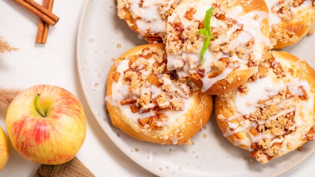 Postaw na niezawodną kombinację wyrośniętego ciasta drożdżowego, delikatnej wkładki serowej i nadzienia jabłkowego z cynamonową nutką. Bułeczki domowej roboty idealnie sprawdzą się w roli deseru do kawy, jak i drugiego śniadania. Dzięki sprawdzonej recepturze ciasto drożdżowe wychodzi idealnie puszyste za każdym razem. Lista składników czeka poniżej. Natomiast dokładną instrukcję, jak krok po kroku zrobić bułeczki znajdziesz w naszym wideo.