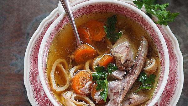 Rosół z gęsi z domowym makaronem. Esencjonalny i aromatyczny