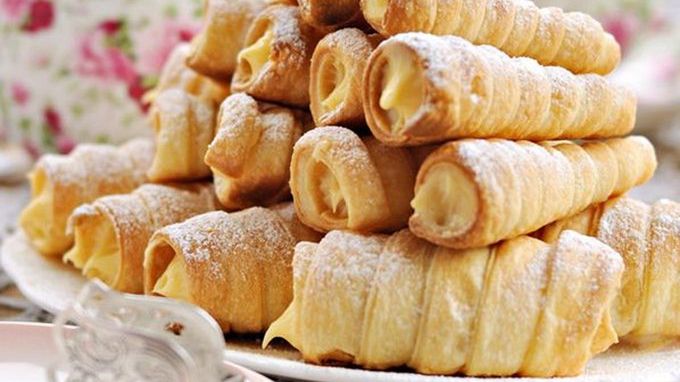 - Rurki z kremem przed podaniem posypać cukrem pudrem.