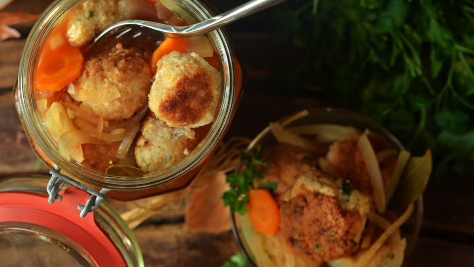 - Ryby opanierować w jajku i przygotowanej mieszance mącznej. W głębokim oleju piec z obu stron na intensywny złoty kolor. Usmażone gorące ryby poukładać w słoikach.