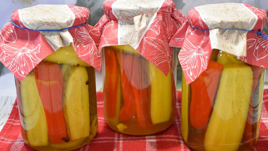 - Składniki na zalewę gotujemy, po ugotowaniu zalewamy warzywa w słoikach, dodajemy pieprz, gorczycę oraz ziele angielskie i szczelnie zamykamy słoiki.