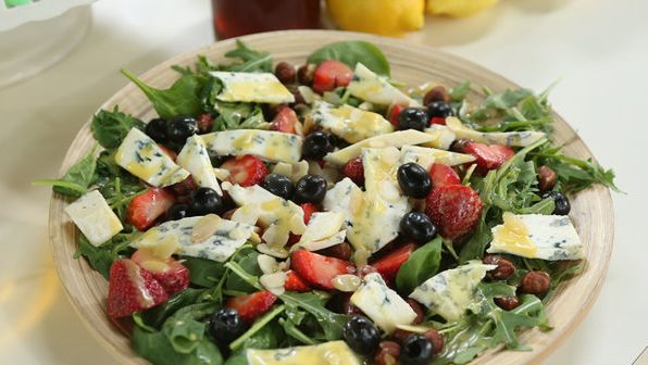 Sałatka z gorgonzolą i truskawkami w miodowym sosie