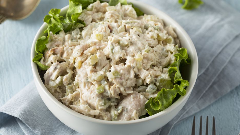- Kurczaka, ogórki, grzyby pokroić w plastry lub kostkę, wymieszać z cebulką.